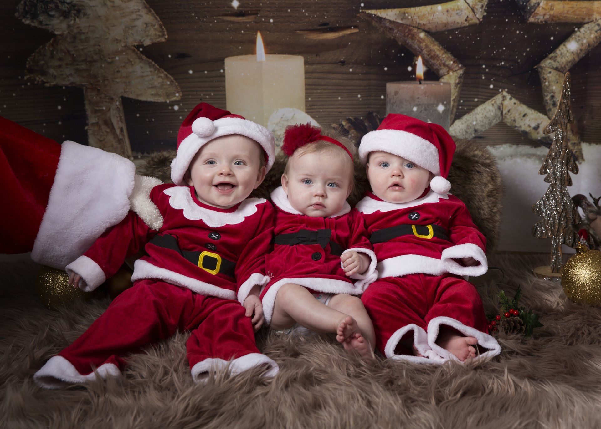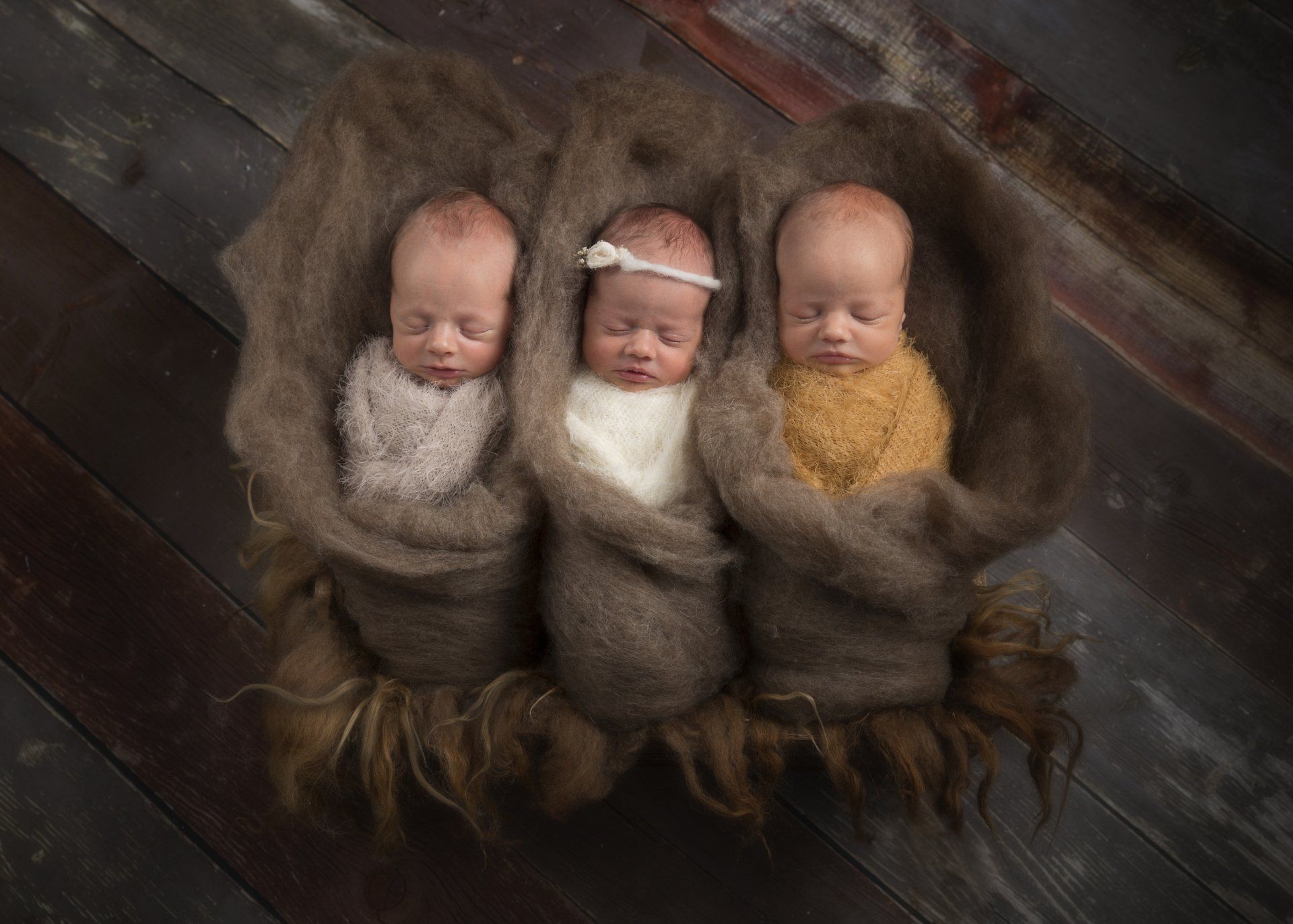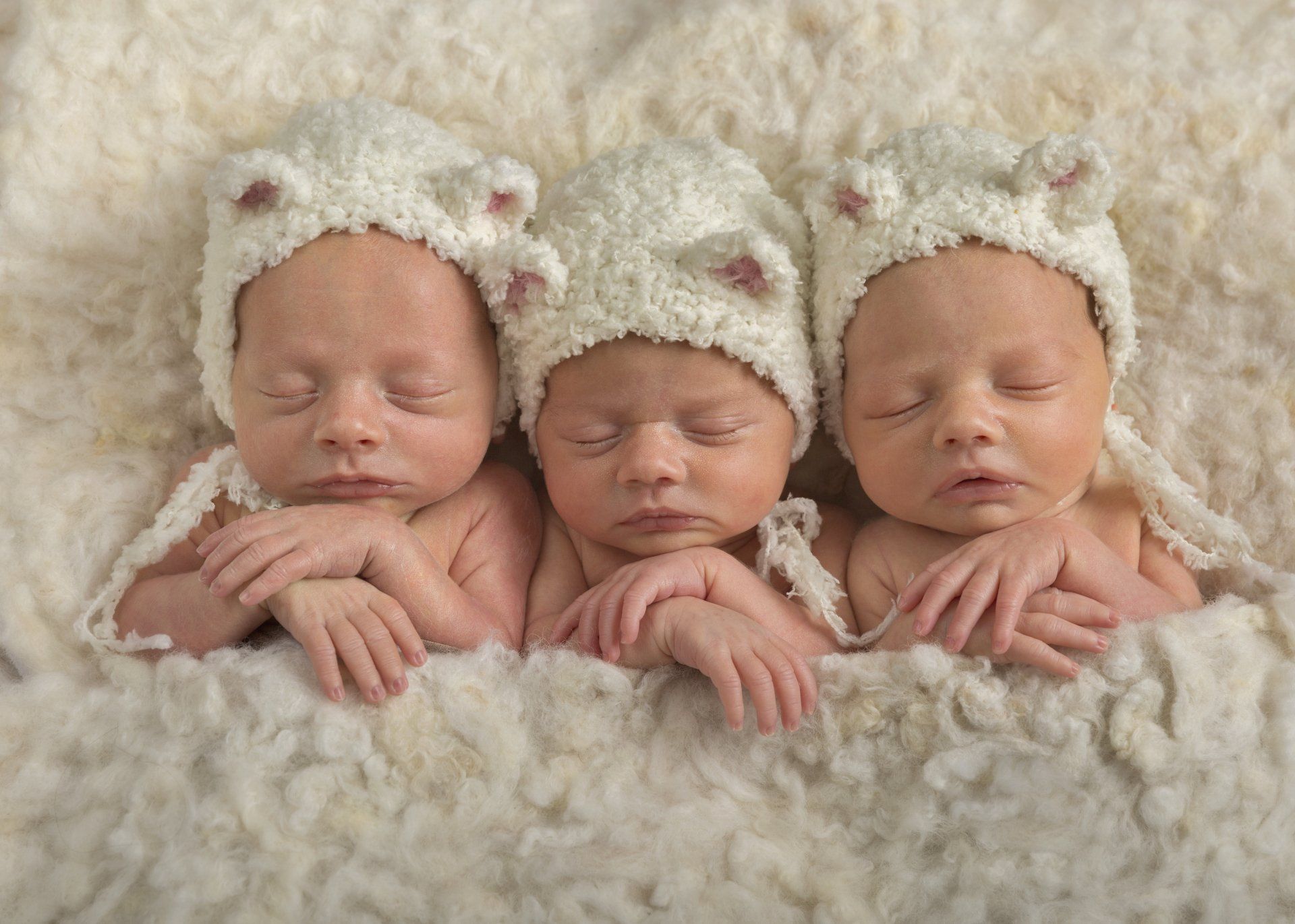 I was 2cms dilated and in slow labour for about two weeks but at exactly 34 weeks, while getting out of the bath, my waters broke. It was snowing and ambulance demand was high, so the journey to hospital seems like a blur, how their dad didn’t get a speeding ticket is beyond me! I was booked in and told I would be monitored but the monitor showed close contractions. I’d been on Tinzaparin injections, so there was a reluctance to deliver unless necessary but then I began to haemorrhage and all in a flash I was on the operating table and three babies were delivered.